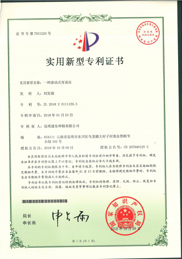一种滚动式育苗床专利转让